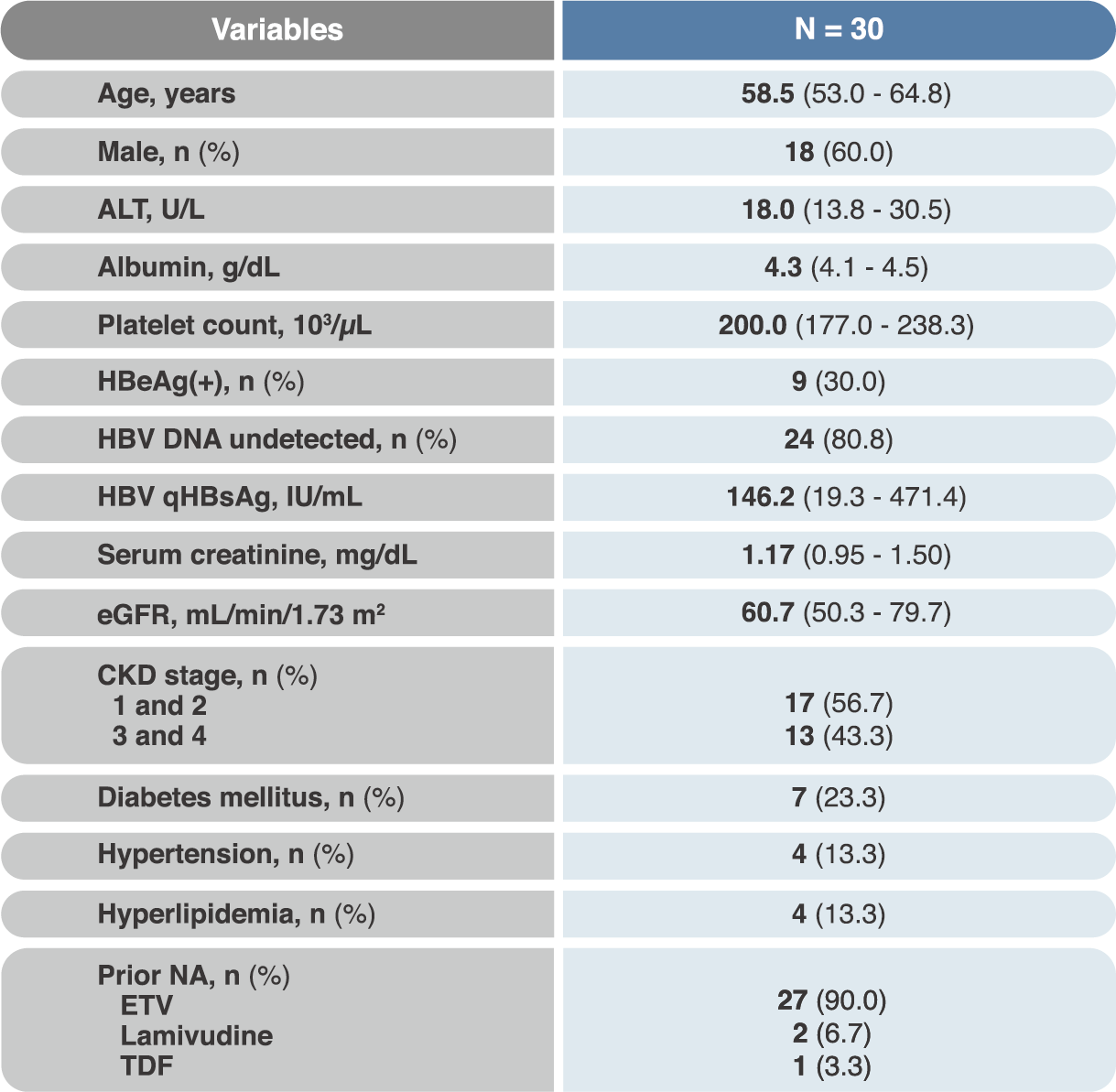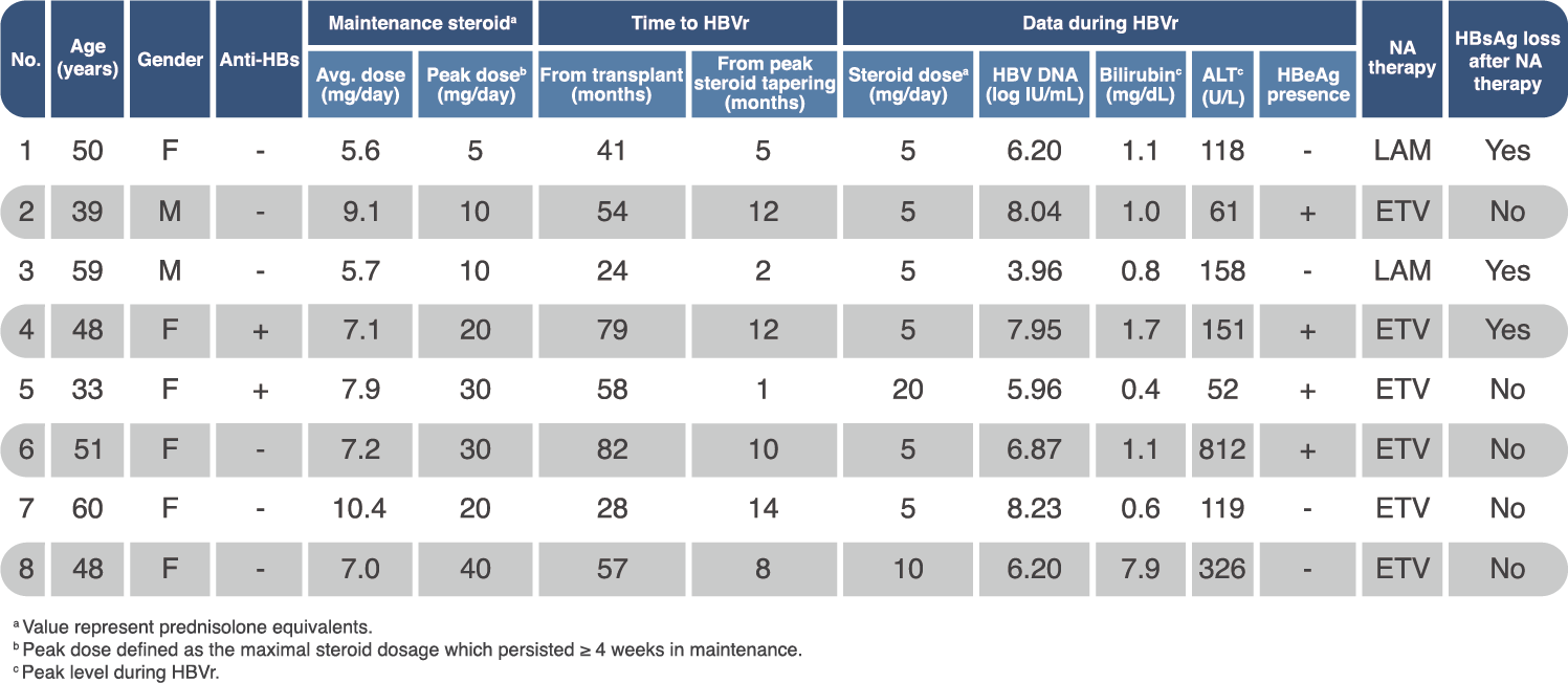 表二、腎移植的 CHB 病人改用 TAF 治療的基線期特徵