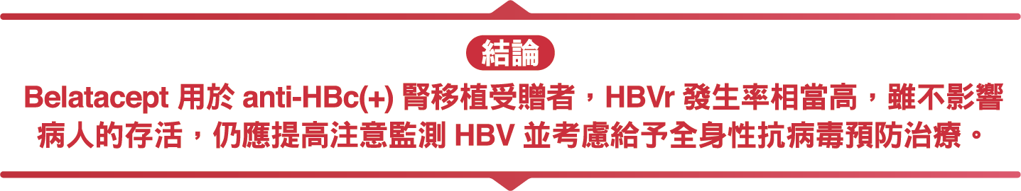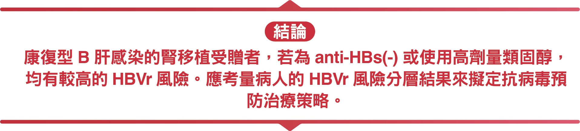 圖二、康復型 B 肝感染的腎移植受贈者 HBVr 累積發生率